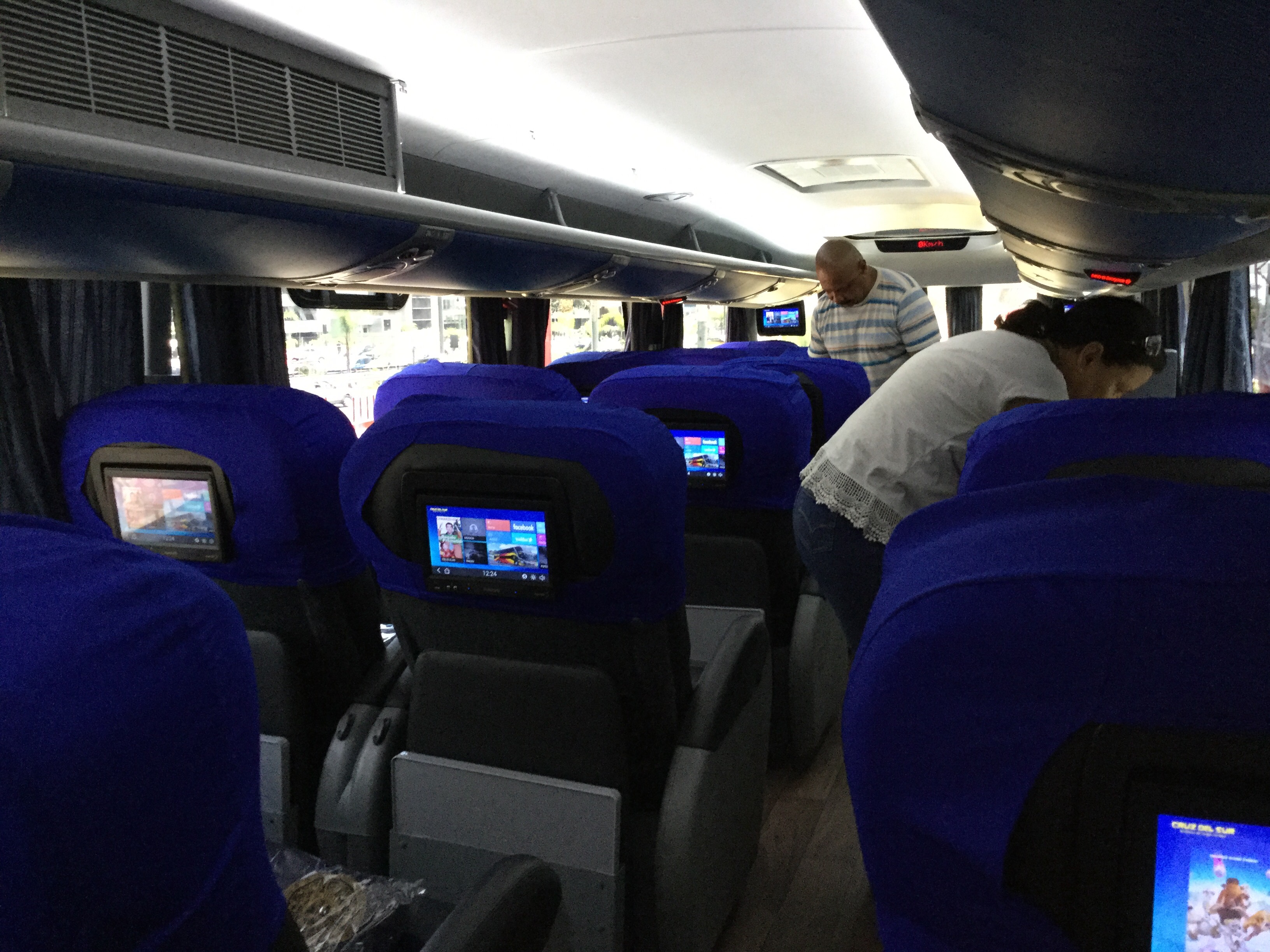 I was on 11 hour bus ride from Lima to Trujillo.  The bus was extremely comfortable compared to Greyhound in the US or even a bus I took in Spain from Bilbao to Santander. Our seats were able to lean back and we had our own entertainment. It was a double-decker bus and each row had three seats. We had ample space to stretch.  We were given lunch and snack time with a service attendant. We had a pillow and blanket on our seat waiting for us as we boarded.  It felt like first class for buses. I have never had first class but I imagine that’s what it would have felt like. The scenery was very contemplative. It was full of desert coastlines and driving through little towns.  For $43 USD it was great deal. It had drawbacks though.  You weren’t allowed to defecate in the bathroom, it was only for urinating.  I didn’t understand the explanation if it was broken or if that was normal. The roads were bumpy for more than half the ride paired with the stop and go traffic. The trip took 11 hours.  I wasn’t used to being on a bus for that long.  I will think twice next time I take a bus anywhere.