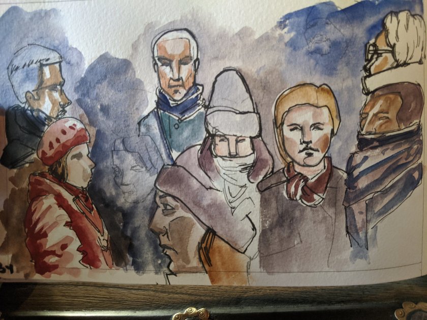 I went to the Comic Strip Center in Brussels. I enjoyed myself so much. Most of the comics were in French. I admired the art, aspects like line quality and watercolor. I was reading the history of the comic strip. The museum subtitles were in three languages. I was first reading in English then in French, then I gave up reading altogether. Even for an artist, a museum can be too much to take in. It really did inspire me to draw more on my travels. I bought a french comic book, I will steal was much technique from it. I will put the title later on.