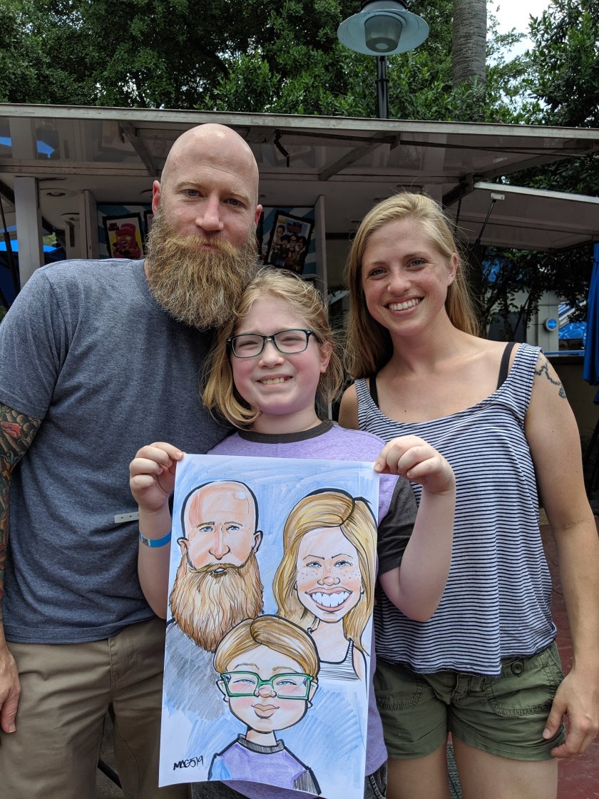 I was a caricaturist in my early 20s at amusements parks around California. I had knee surgery earlier this year and I needed a job not too labor intensive. So how I stumbled across a caricature stand at the aquarium here in Houston. I just talked with the manager. He told me to bring in some of my work in. I had to make some work and hand them in. I got hired. Truth be told it took me about two weeks to make 2-3 pieces. It took me awhile to get used to making art. It’s weird now I can knock out draw my entire shift and sell retail caricatures from my first day. Just a few things I needed to learn was how the register worked and how to get faster at drawing.